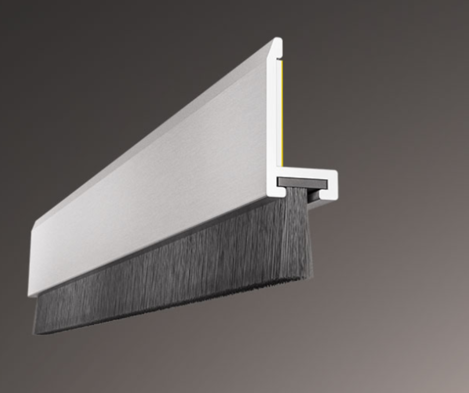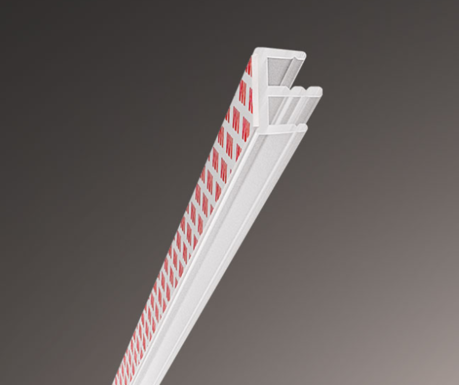Uszczelka pionowa montowana na krawędzi skrzydła szklanego. Skutecznie eliminuje szczeliny między skrzydłem a ościeżnicą albo pomiędzy dwoma skrzydłami drzwi.